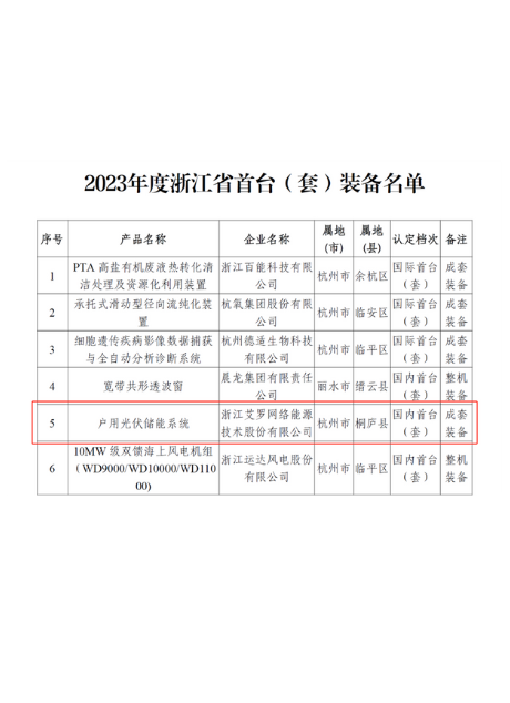 • “智能光伏储能并网逆变器”入选“浙江省装备制造业首台套产品”